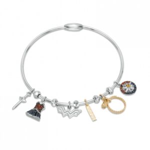 Multi-Gemstone Charm Bangle Bracelet in Sterling Silver and 10K Gold:Multi-Gemstone Charm Bangle Bracelet in Sterling Silver and 10K Gold