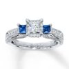 Diamond/Sapphire Ring 1 ct tw Princess-cut 14K White Gold